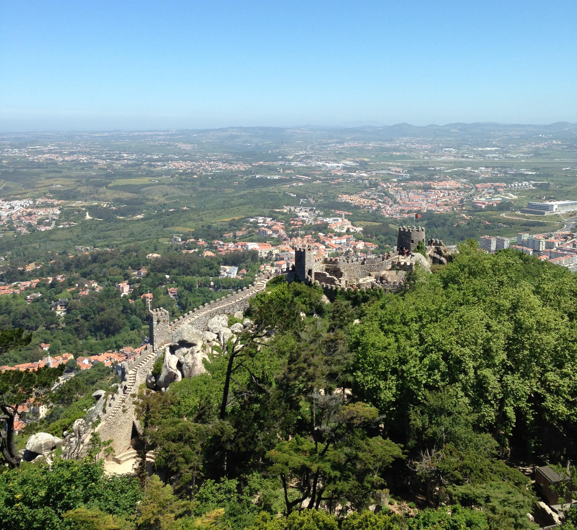Next we visited the Castelo dos Mouros (Castle of the Moors). Unlike the palace, this site didn’t have much of an interior because it was mainly used as a strategic outlook point. We climbed the uneven cobblestone steps as far up as we could go and the view was absolutely stunning. At first I didn’t even plan to climb up all the way–jet lag and a very active day had worn me out–but I am thrilled I ended up going for it. The view was definitely worth it, and I recommend it for anyone who is able-bodied and up for the challenge. There’s nothing like being high up and feeling like you own all the gorgeous palaces (plus the entire city of Lisbon) below you.