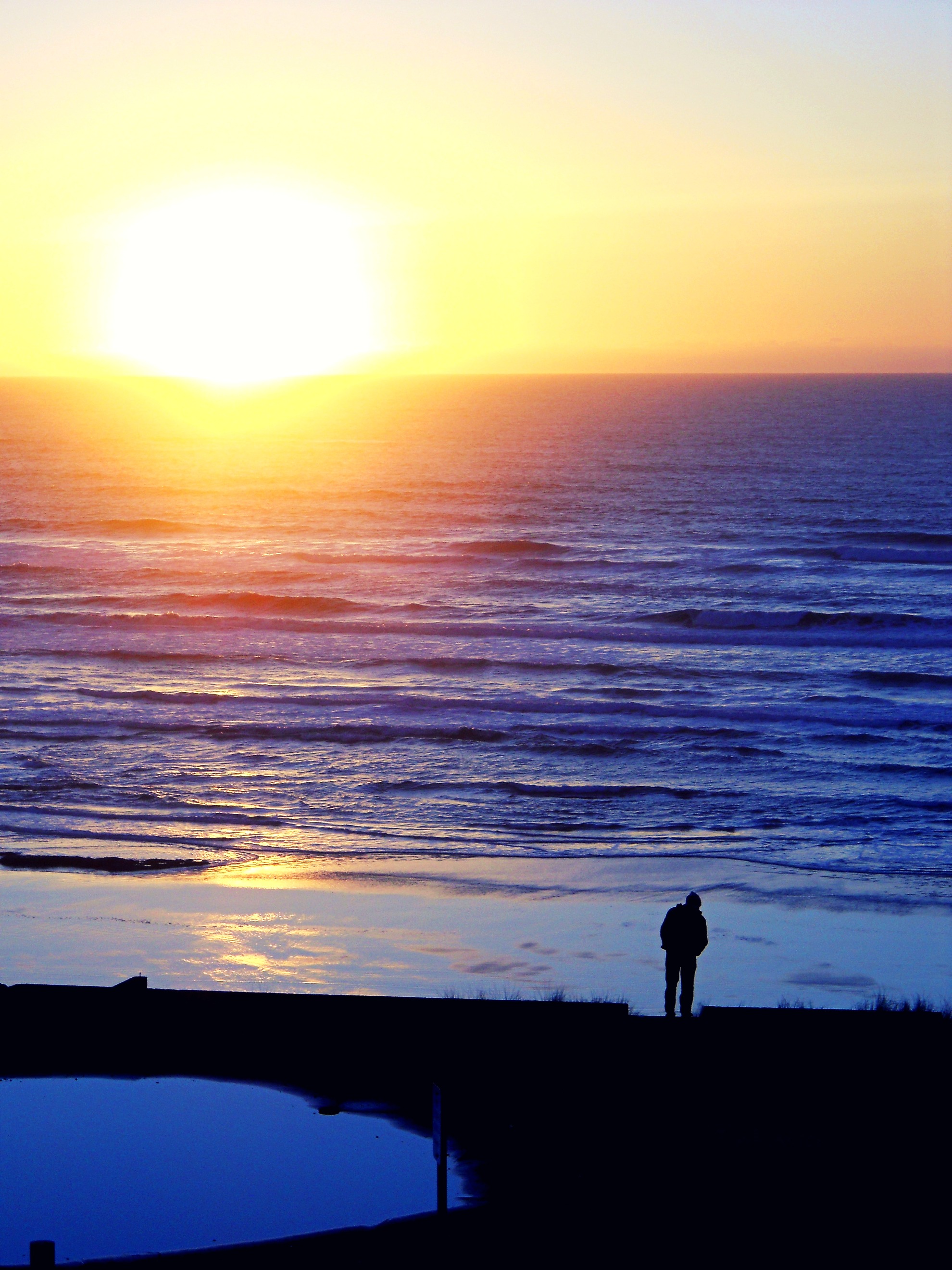 beautiful shot! not only does it show the feeling of solitude one might feel when standing in front of the greaness of the ocean, it also conveys a deep feeling of peace.