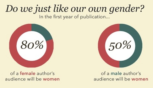 The takeaway is this: men and women each primarily lean towards reading their own gender. Yet those first two circles are troubling–only 20% of a female’s audience will be men, yet women make up half of a male author’s audience.