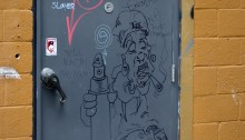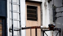 This probably isn’t the world’s smallest balcony, but it’s so unamenable that it almost makes the door look like one of those trick doors that lead nowhere. Add that to the ladder that leads nowhere either and you’ve got an overall strange alleyway. Taken in downtown Vancouver, British Columbia. For more doors from all over…